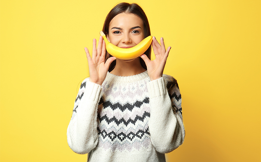 Η μπανάνα παρέχει μια πρωτεΐνη που ονομάζεται τρυπτοφάνη και η οποία, όταν διασπάται στον οργανισμό, μετατρέπεται σε σεροτονίνη, έναν νευροδιαβιβαστή που προωθεί την καλή διάθεση.