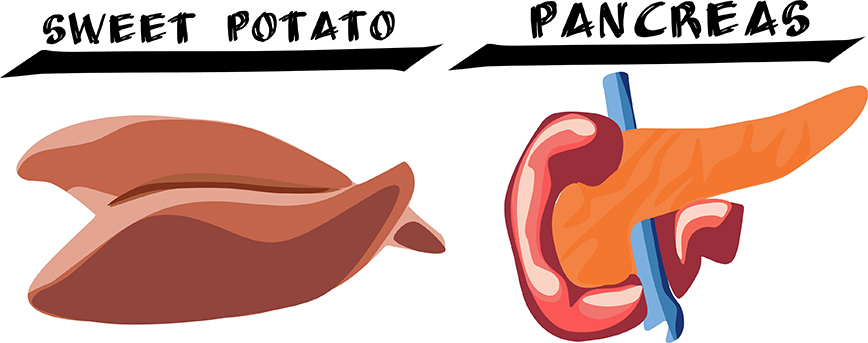 Γλυκοπατάτα και Παγκρέας. Μπορείτε να δείτε την ομοιότητα; Μοιάζει με το σχήμα που έχει το πάγκρεας και βοηθά το όργανο να λειτουργεί υγιεινά.