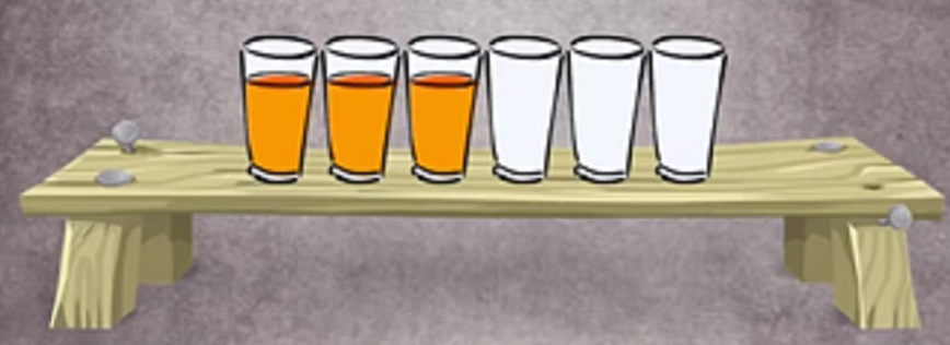 Το μόνο που χρειάζεται ο παρακάτω γρίφος για να λυθεί είναι παρατηρητικότητα και σκέψη. Έχουμε συνολικά έξι ποτήρια στη σειρά πάνω σε ένα τραπέζι. Τα τρία πρώτα ποτήρια είναι γεμάτα με χυμό πορτοκαλιού ενώ τα επόμενα τρία ποτήρια είναι άδεια. Αν κάνουμε μόνο μία κίνηση, πώς μπορούμε να κάνουμε τα ποτήρια να βρίσκονται στη σειρά εναλλάξ γεμάτα και άδεια; Η απάντηση παρακάτω…
