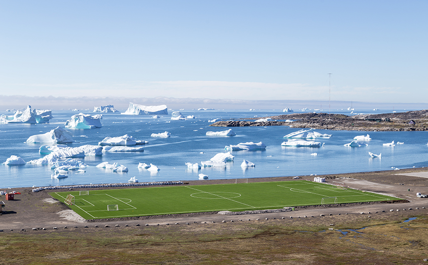 Υπάρχουν πολλά γήπεδα ποδοσφαίρου στον κόσμο με ιδιαίτερα χαρακτηριστικά. Το συγκεκριμένο στη Γροιλανδία σίγουρα μπορεί να είναι ψηλά στη λίστα καθώς πόσο συχνά παίζεις μπάλα με φόντο τα παγόβουνα;