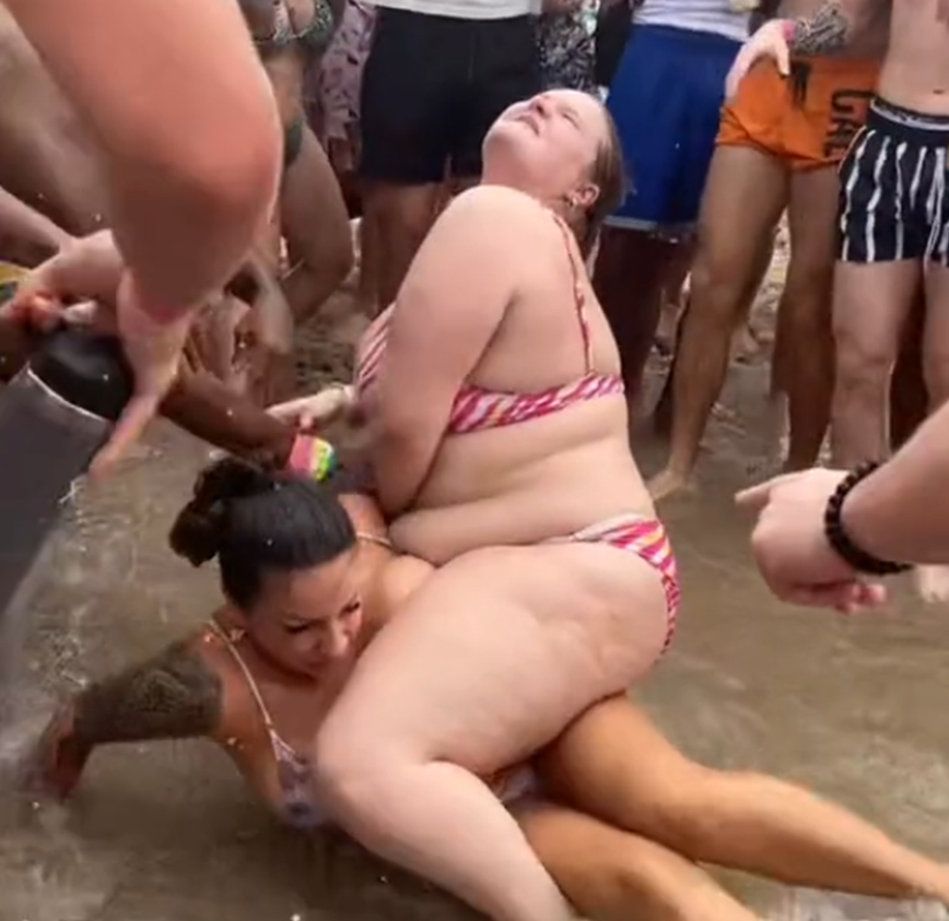 Οι γυναίκες με μπικίνι συγκρούονται, ενώ πάνω στην ένταση το στήθος της μιας ξεπροβάλει από το μαγιό της. Χρειάστηκε τελικά να χωρίσουν το ζευγάρι, που πάλευε μπροστά σε δεκάδες άτομα.