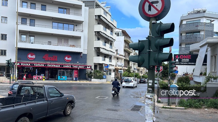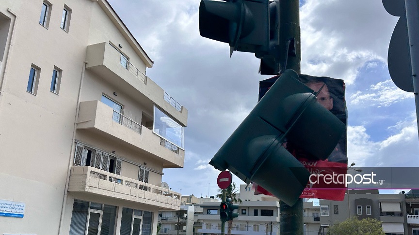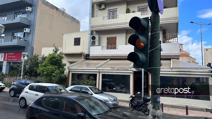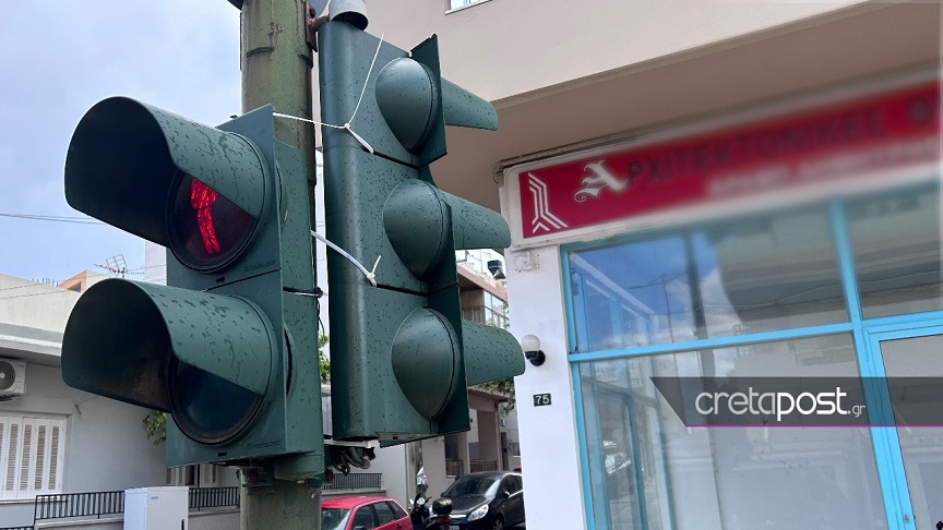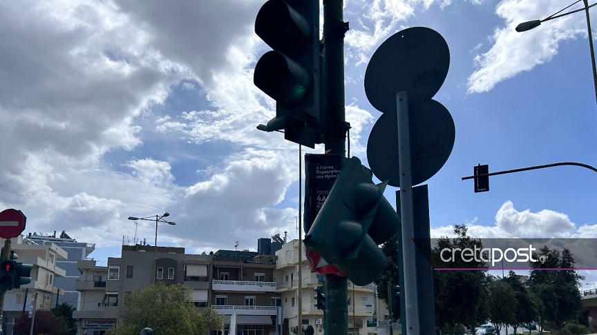 Χαρακτηριστικές είναι μάλιστα οι παρακάτω φωτογραφίες του cretapost.gr που δείχνουν ένα φανάρι που έχει σπάσει και κρέμεται στη λεωφόρο Κνωσού. Και αυτός ο φωτεινός σηματοδότης πρέπει άμεσα να φτιαχτεί.