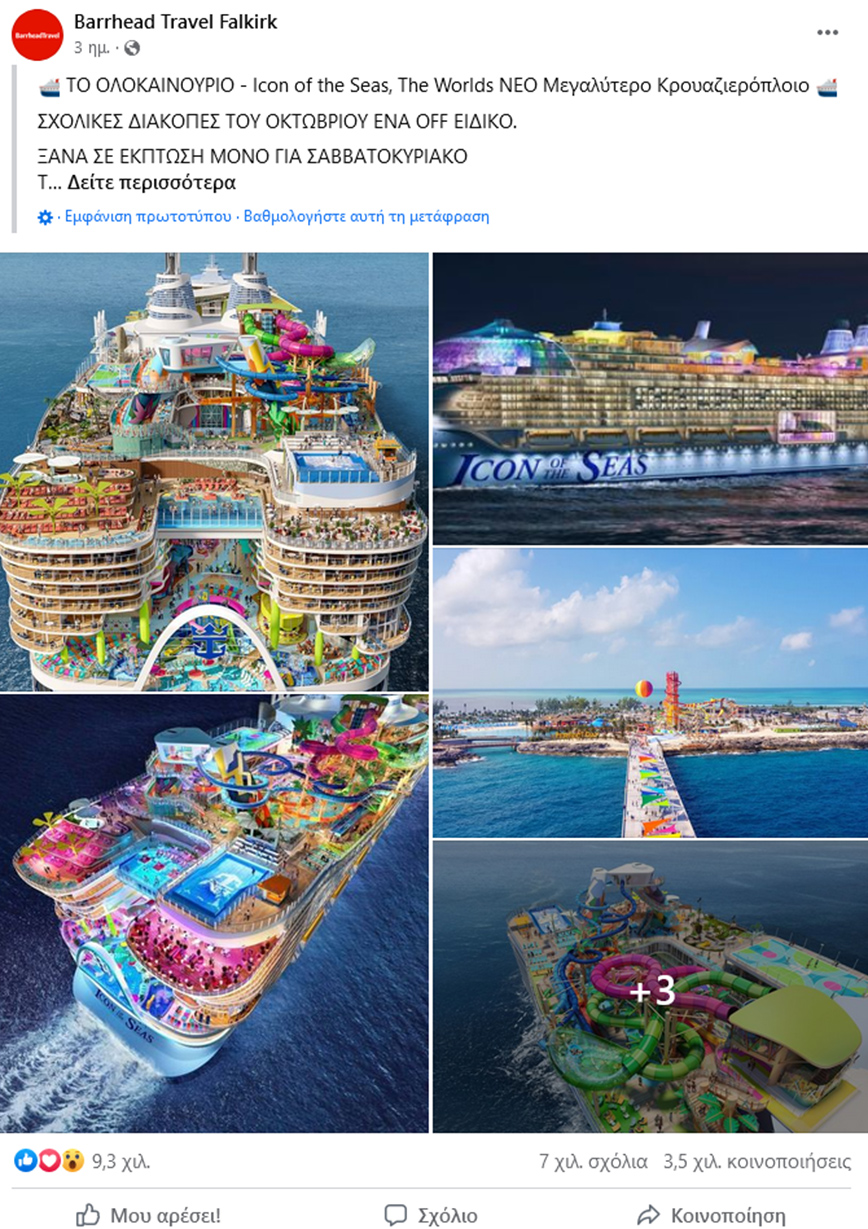 Το Icon of the Seas δεν είναι απλώς ένα κρουαζιερόπλοιο αλλά μια μικρή πλωτή πόλη. Αυτό για το οποίο ξεχωρίζει, βέβαια, είναι οι πολλές πισίνες, οι νεροτσουλήθρες και τα γήπεδα που έχει. Σαν ένα γιγάντιο λούνα παρκ όπως φαίνεται από την παρακάτω φωτογραφία που είναι τραβηγμένη από ψηλά.