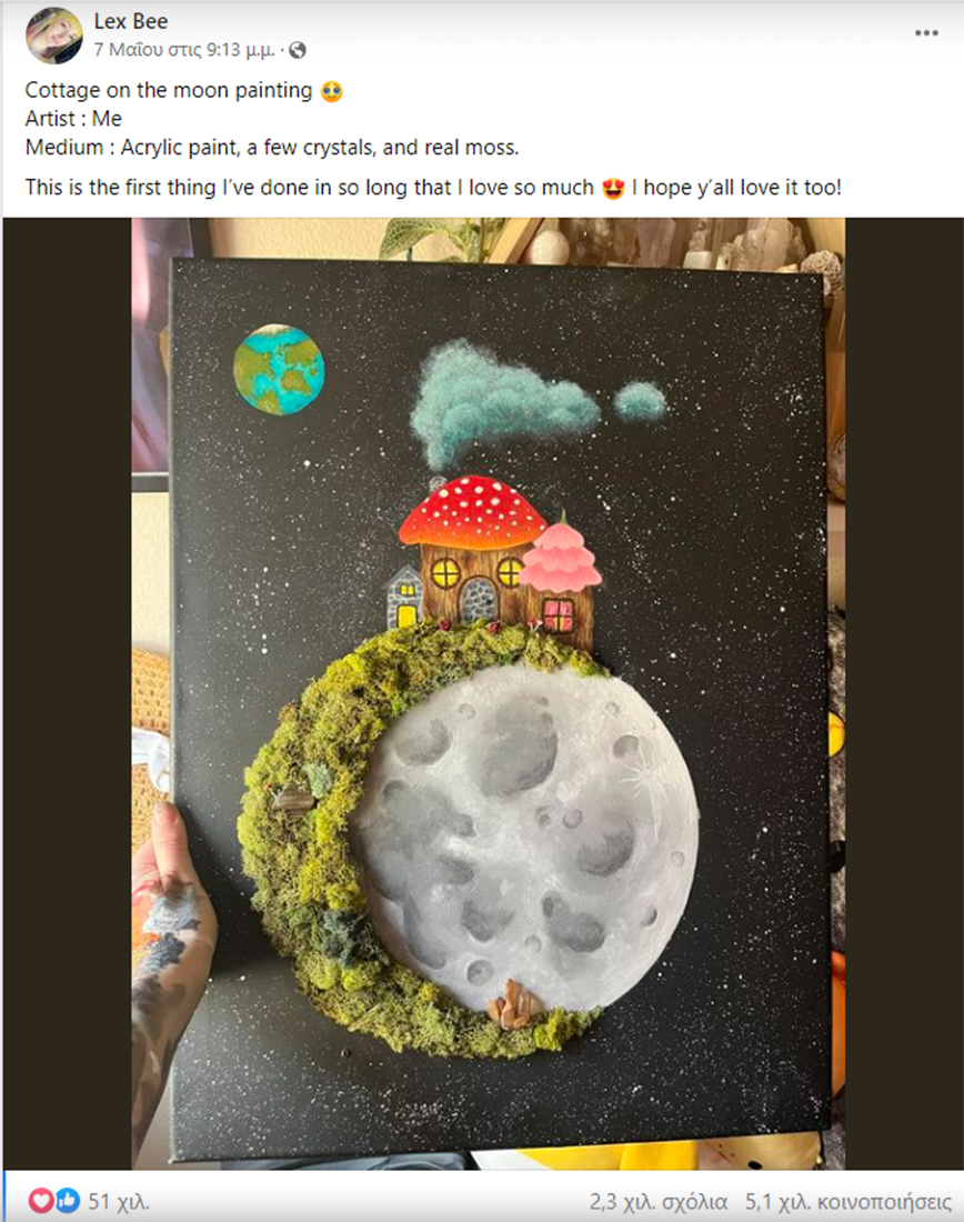Γεμάτες με μικρά και μεγάλα έργα τέχνης βρίσκονται διάφορες ομάδες στα κοινωνικά δίκτυα και το αποτέλεσμα είναι μερικές φορές περισσότερο από εντυπωσιακό. Χαρακτηριστική περίπτωση ο πίνακας που θα δείτε παρακάτω ο οποίος συγκέντρωσε περισσότερα από 50.000 like και θεωρείς ότι ξεπήδησε από σελίδα παραμυθιού.