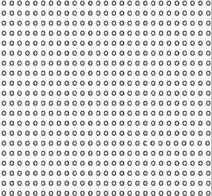 Οι οφθαλμαπάτες ακονίζουν το μυαλό και βοηθούν να γίνεις καλύτερος στην παρατηρητικότητα. Δεν είναι πάντα τόσο εύκολες, όμως. Όπως για παράδειγμα η παρακάτω που έχει κρυμμένο το γράμμα c ανάμεσα σε πολλά o.