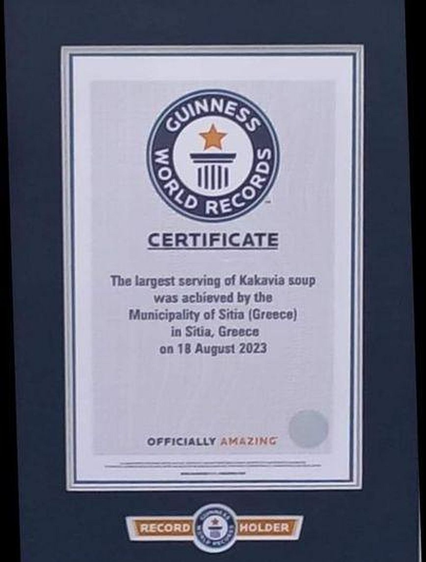 Σύμφωνα με το cretapost.gr o δήμος διοργάνωσε μια ειδική εκδήλωση σε μια προσπάθεια να ξεπεράσει το προηγούμενο ρεκόρ Γκίνες για τη μεγαλύτερη κακαβιά, το οποίο κατείχε η Ισπανία (300 κιλά).