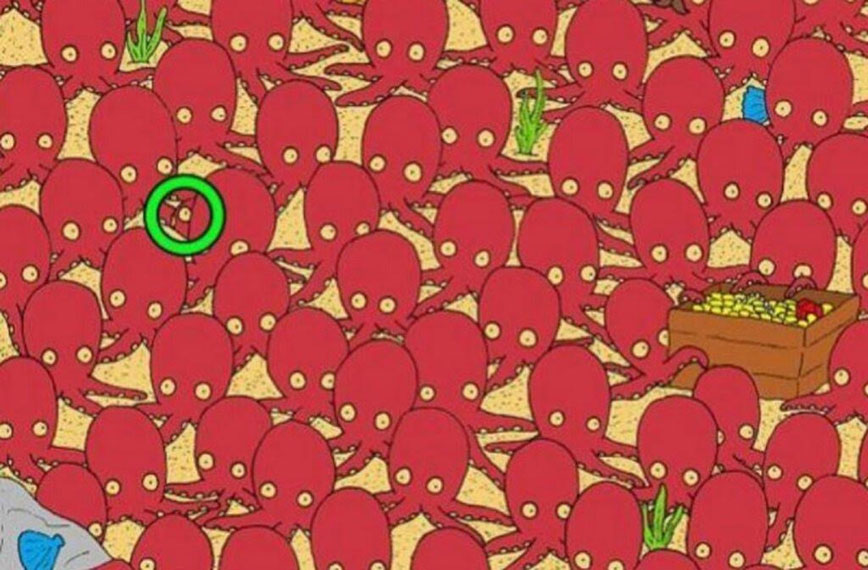 Ένα τεστ παρατηρητικότητας που δεν είναι τόσο απλό όσο φαίνεται. Ανάμεσα στα χταπόδια που βλέπετε υπάρχει ένα ψάρι. Μπορείτε να το εντοπίσετε;
