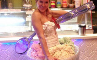 Η Αθηνά Οικονομάκου πιάνει από το χέρι κούκλα βιτρίνας, νομίζοντας ότι είναι ο σύντροφός της