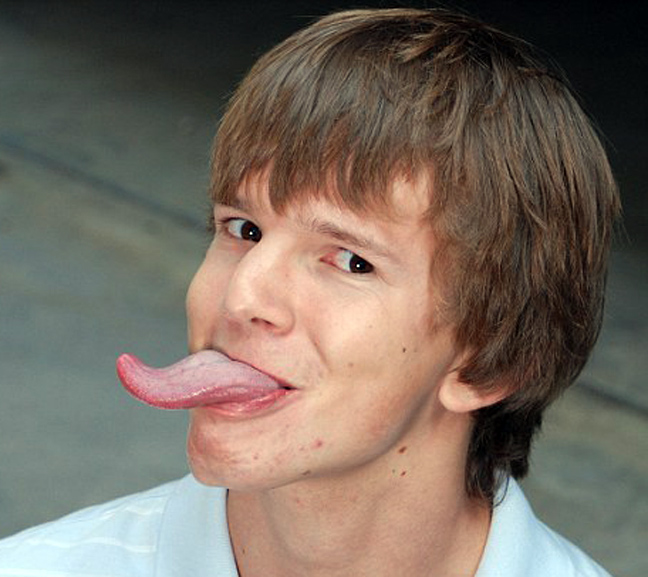 Με την μακρόστενη γλώσσα του μπορεί να φτάσει τη μύτη του και να την στριφογυρίσει με το χέρι του.