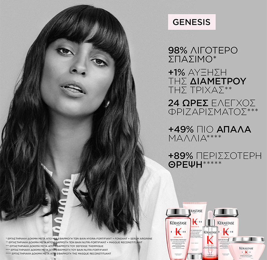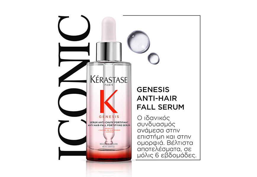 - Αν η τριχόπτωση οφείλεται στις αδύναμες ρίζες, ενδυναμώστε τα αδύναμα μαλλιά σας με τον καινοτόμο, καθημερινό, ενδυναμωτικό ορό κατά της τριχόπτωσης, Serum Anti-Chute Fortifiant της σειράς Genesis της Kérastase. Είναι εμπλουτισμένος με πανίσχυρα συστατικά που ενισχύουν την αντοχή της τρίχας. Συμβάλλει στη σταθεροποίηση των τριχών στο τριχωτό της κεφαλής, ενώ ταυτόχρονα εξασφαλίζει το βέλτιστο περιβάλλον για την ανάπτυξη νέων τριχών. Μέρα με τη μέρα, ο ορός αυτός, καταπραΰνει και ενδυναμώνει τον φυσικό προστατευτικό φραγμό του τριχωτού της κεφαλής σας.