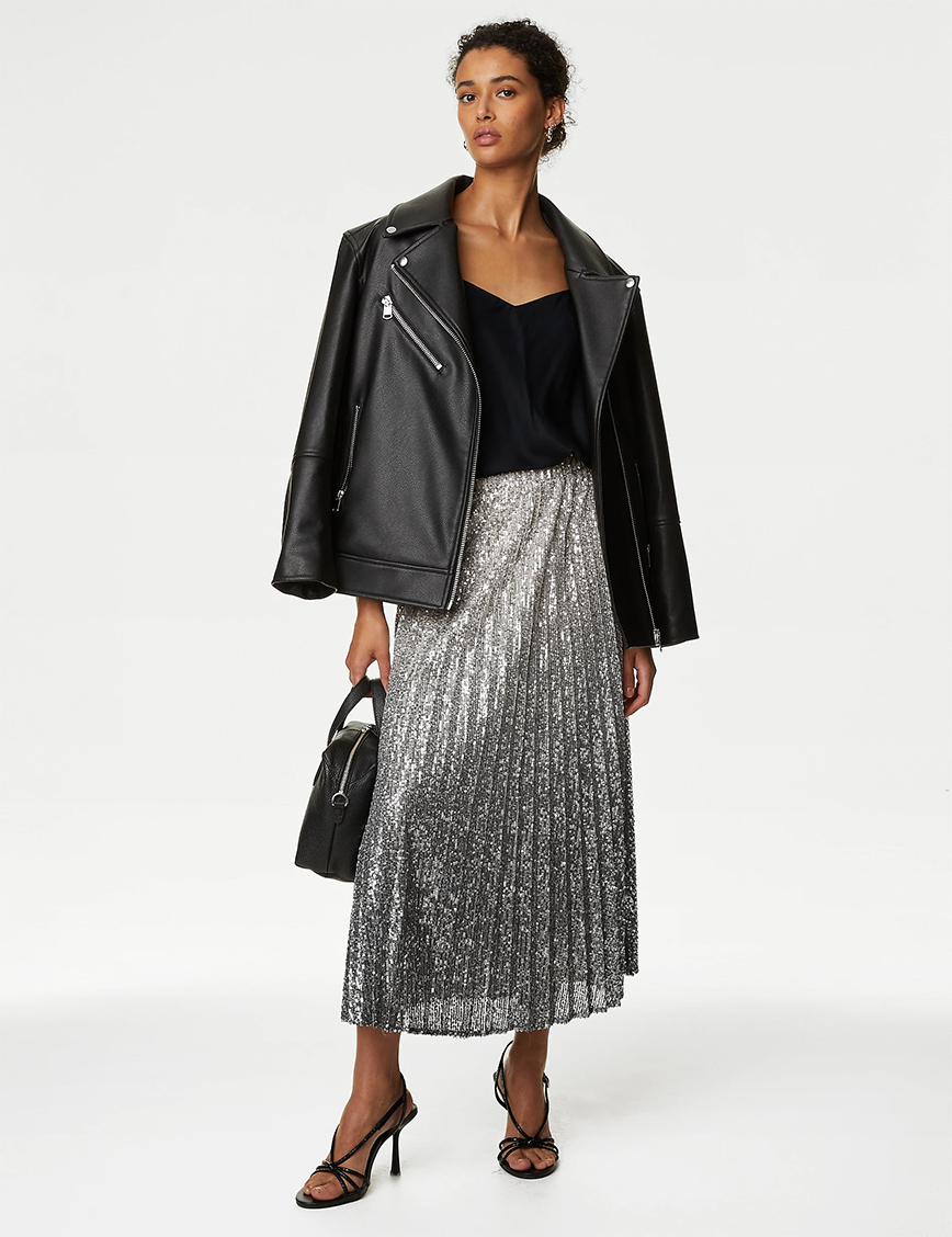Marks And Spencer όμπρε πλισέ μάξι-μίντι φούστα με παγιέτες €52,49