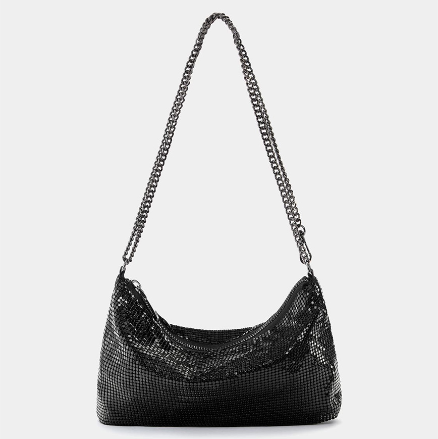 Αν τα ρούχα με παγιέτες σας φαίνονται υπερβολή και κάπως δεσμευτικό, τότε μπορείτε να εντάξετε την παγιέτα στα αξεσουάρ των εορταστικών σας outfit και όχι στα ρούχα. Η παραπάνω τσάντα αποτελεί μια πολύ καλή επιλογή για κάθε μέρα, καθώς έχει το σωστό μέγεθος που θα σας βολέψει είτε στη δουλειά είτε στη βόλτα.