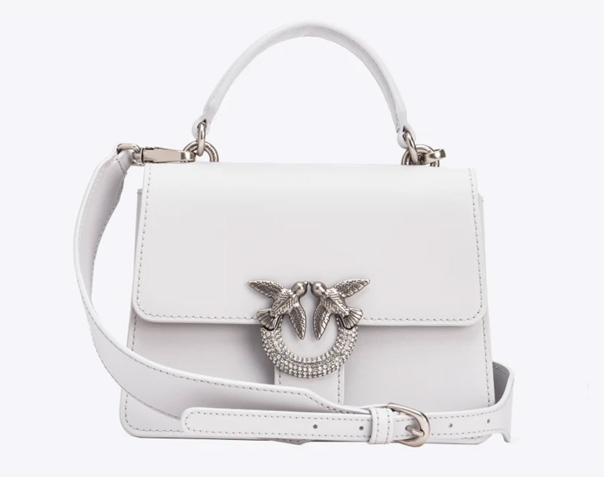 Οι τσάντες που φοριούνται αποκλειστικά στο χέρι είναι επίσης μια από τις κορυφαίες τάσεις της σεζόν, ειδικά μάλιστα αν έχουν πάνω τους κάποιο κόσμημα. Επιπλέον, το λευκό χρώμα προσδίδει κομψότητα, ενώ συνδυάζεται τέλεια με total black outfit. Η συγκεκριμένη Pinko είναι πιο ακριβή από τις προηγούμενες, αλλά δεν καταφέραμε να αντισταθούμε στη διακριτική γοητεία της.