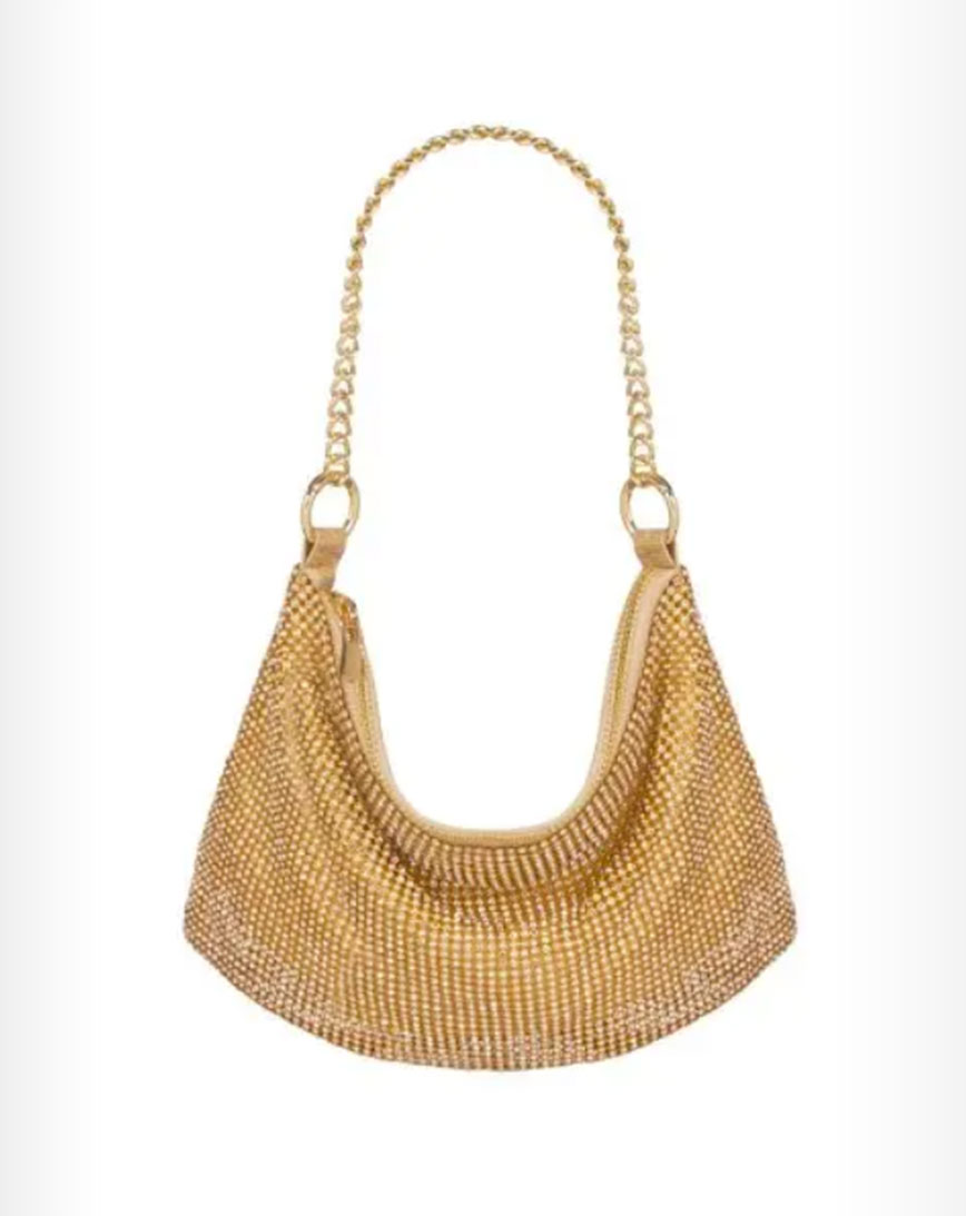 Η αγάπη για τα στρας εξαπλώνεται και στα αξεσουάρ. Έτσι φέτος θα βρείτε τσάντες με στρας σε διάφορα χρώματα, όπως χρυσό (όπως η παρακάτω), ασημί και φούξια. Είναι η καλύτερη επιλογή για τις βραδινές σας εμφανίσεις και, πιστέψτε μας, θα απογειώσει το look σας.