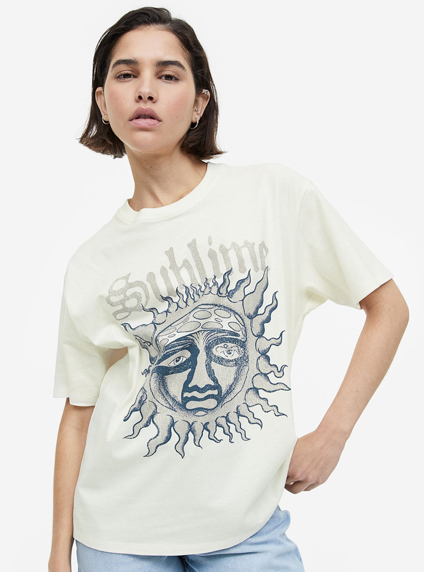 H&M T-shirt σε φαρδιά γραμμή με στάμπα €14,99