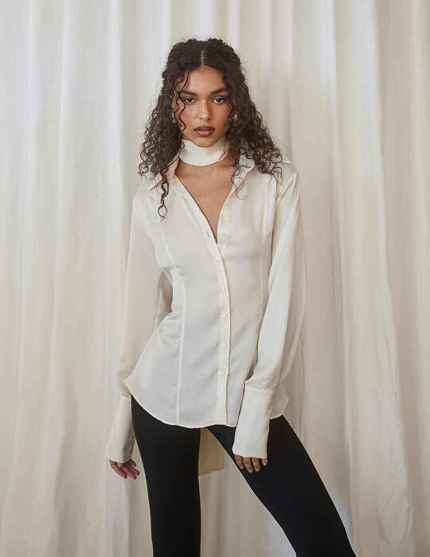 Ψάχνετε για ένα κομμάτι που θα είναι εντυπωσιακό ανεξαρτήτως πώς το φοράτε; Σκεφτείτε το σατέν πουκάμισο. Η Hegarty λέει ότι το φοράει «με ψηλόμεσα παντελόνια και τα αγαπημένα μου statement σκουλαρίκια». Κι αν θέλετε να μετατρέψετε το look από πρωινό σε βραδινό, το μόνο που έχετε να κάνετε είναι να αντικαταστήσετε τα flat παπούτσια με ένα ζευγάρι ψηλοτάκουνα.