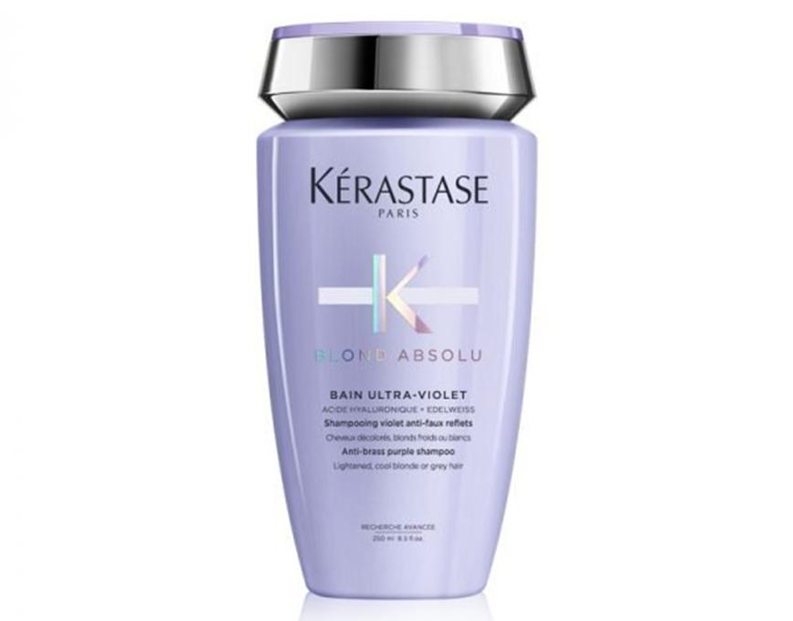 Το σαμπουάν Blond Absolu Anti-Brass Purple της Kérastase είναι best-seller, αφού χάρη στη μοβ απόχρωσή του, εξαλείφει το κιτρίνισμα των μαλλιών. Αξίζει επίσης να αναφέρουμε ότι η σύνθεσή του είναι ενισχυμένη με ενυδατικό υαλουρονικό οξύ για να δεσμεύει το νερό στην επιδερμίδα της τρίχας, κάνοντάς την πιο λαμπερή και μαλακή. Σύμφωνα με το Allure, ενυδατώνει επαρκώς τα γκρι μαλλιά και τους χαρίζει απαλότητα.