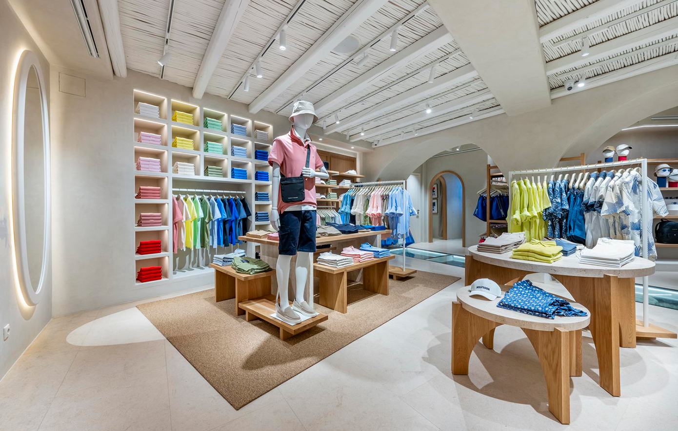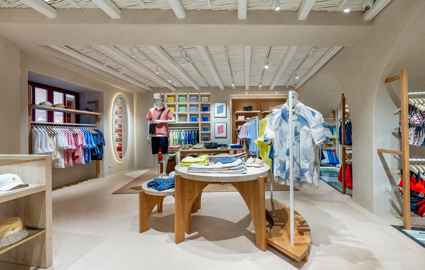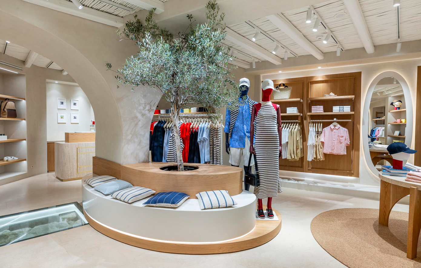 Τοποθετημένο ανάμεσα στα χαρακτηριστικά Ματογιάννια της Μυκόνου, το γραφικό κατάστημα είναι σχεδιασμένο σύμφωνα με την αισθητική του νησιού. Με οροφές φτιαγμένες από τοπική ιτιά και δάπεδα από ασβεστολιθικό μάρμαρο, προσδίδουν μια ανανεωμένη πινελιά στον χώρο αποτίοντας φόρο τιμής στο παραδοσιακό κυκλαδίτικο στυλ. Ένας φιλόξενος χώρος καθιστικού περιβάλλει ένα ελαιόδεντρο που βρίσκεται μέσα στο κατάστημα, ενώ η διακριτική σήμανση του καταστήματος ενσωματώνεται αρμονικά στο εμβληματικό τοπίο της Μυκόνου. Επιπλέον, ένα σκιερό υπαίθριο σαλόνι προσκαλεί τους επισκέπτες να χαλαρώσουν απολαμβάνοντας τη νησιωτική αύρα στην Πλατεία Αγίας Μονής. Εμπνευσμένο από το κόκκινο, λευκό και μπλε DNA του brand, το κατάστημα της Μυκόνου ενσωματώνει τον εμβληματικό χαρακτήρα του TOMMY HILFIGER σε έναν τολμηρό συνδυασμό του κλασικού και του μοντέρνου.