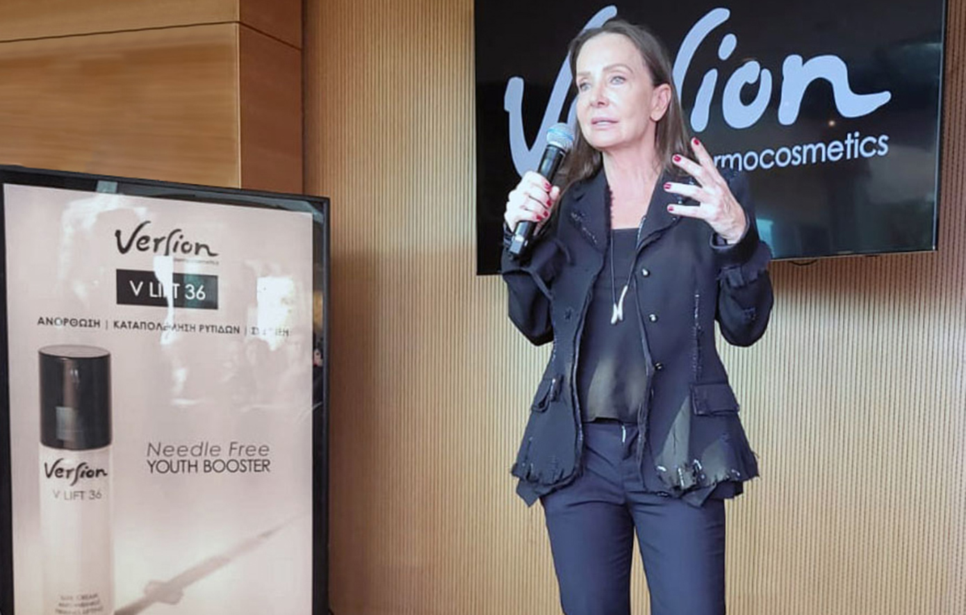 Στην έναρξη της παρουσίασης, η Μαρίζα Αγγελίδη,Founder της Version Dermocosmetics, επικεντρώθηκε στην τεχνογνωσία του Brand, τις ειδικές φόρμουλες που ανανεώνονται και εκσυγχρονίζονται σύμφωνα με τα δεδομένα της επιστήμης εδώ και 32 χρόνια και τις διεθνείς συνεργασίες τους με ερευνητικά κέντρα για την έρευνα και την ανάπτυξη των προϊόντων. Για την νέα δημιουργία επισήμανε: «Σήμερα, κάνουμε ένα βήμα παραπάνω, παρουσιάζοντάς σας ένα νέο, πρωτοποριακό προϊόν, την κρέμα V LIFT 36, η οποία χαρακτηρίζεται από τη συνέργεια της υψηλής συγκέντρωσης ειδικών ολιγοπεπτιδίων και δραστικών συστατικών. Μια προηγμένη σύνθεση η οποία εγκλωβίζει τα ειδικά ολιγοπεπτίδια σε ένα πρωτοποριακό σύστημα απελευθέρωσης, ενισχύοντας έτσι την αποτελεσματικότητά τους. Η συστηματική χρήση του προϊόντος στοχεύει στην ανόρθωση του σχήματος V του προσώπου και στη χαλάρωση των έντονων εκφράσεων των 36 μυών. Οι μελέτες μας δείχνουν ότι 30 λεπτά μετά την εφαρμογή του προϊόντος οι ρυτίδες δείχνουν λιγότερο εμφανείς και η επιδερμίδα ανακτά ενέργεια από την πρώτη κιόλας εφαρμογή. Με την συστηματική εφαρμογή εξασφαλίζεται μετρήσιμη αύξηση της σφριγηλότητας της επιδερμίδας και βελτίωση της τονικότητας».