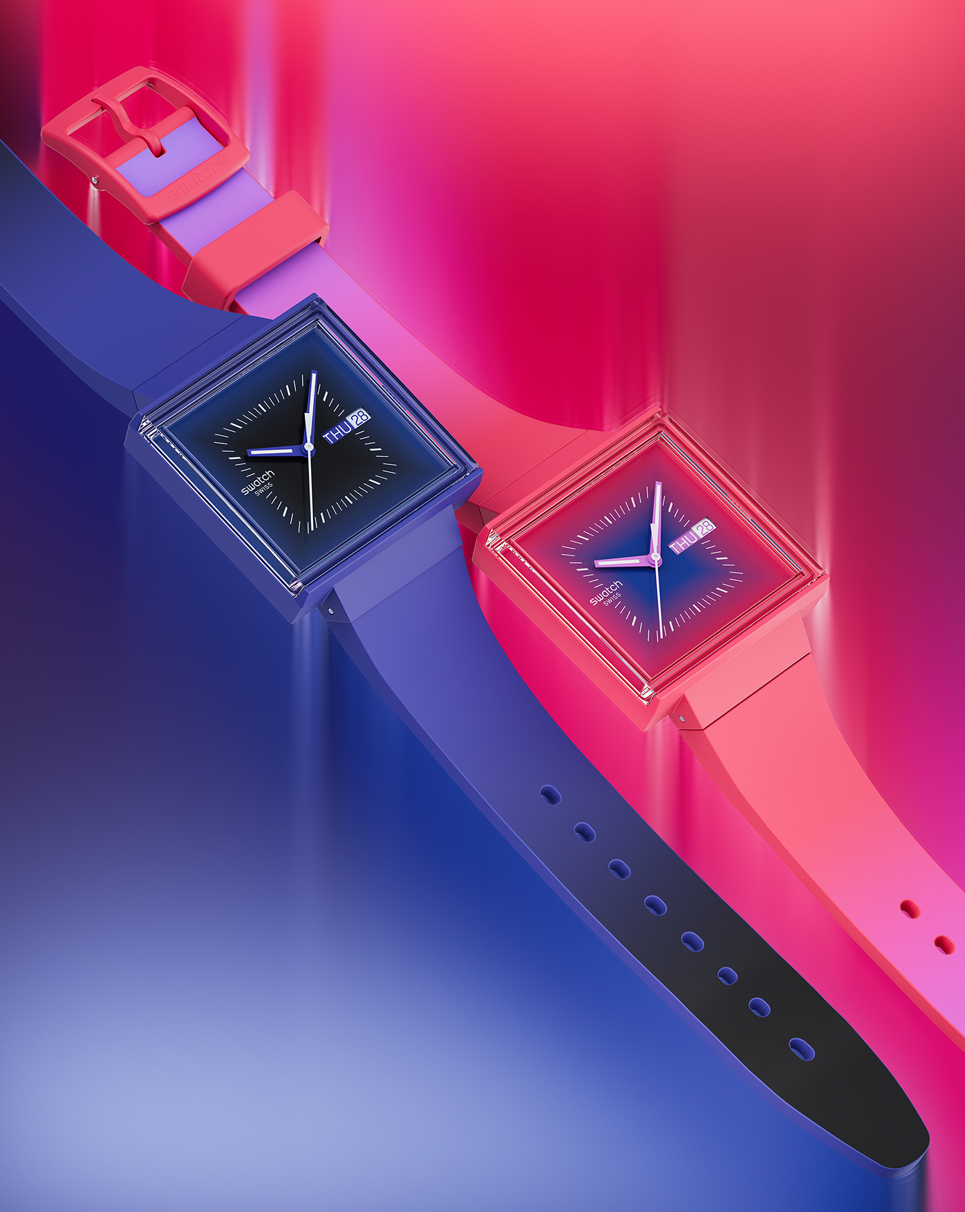 Συνδυάζοντας άψογα το πρακτικό πνεύμα με το γούστο, αυτά τα σχέδια Swatch ESSENTIALS διαθέτουν ντεγκραντέ αποχρώσεις που εκτείνονται σε όλο το καντράν, σε μερικά από τα πιο καυτά χρώματα της σεζόν.