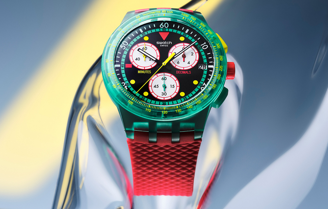 Το SWATCH NEON EMERALD CHRONO είναι η παιχνιδιάρικη επανερμηνεία του EMERALD DIVER που κυκλοφόρησε το 1986. Κάνοντας το ντεμπούτο του τώρα ως χρονογράφος, αυτό το ρολόι συνδυάζει την ακρίβεια της κλασικής χρονομέτρησης με μια ζωηρή χρωματική παλέτα, ανανεωμένη και ενισχυμένη με το αληθινό στυλ των ‘80s/’90s.