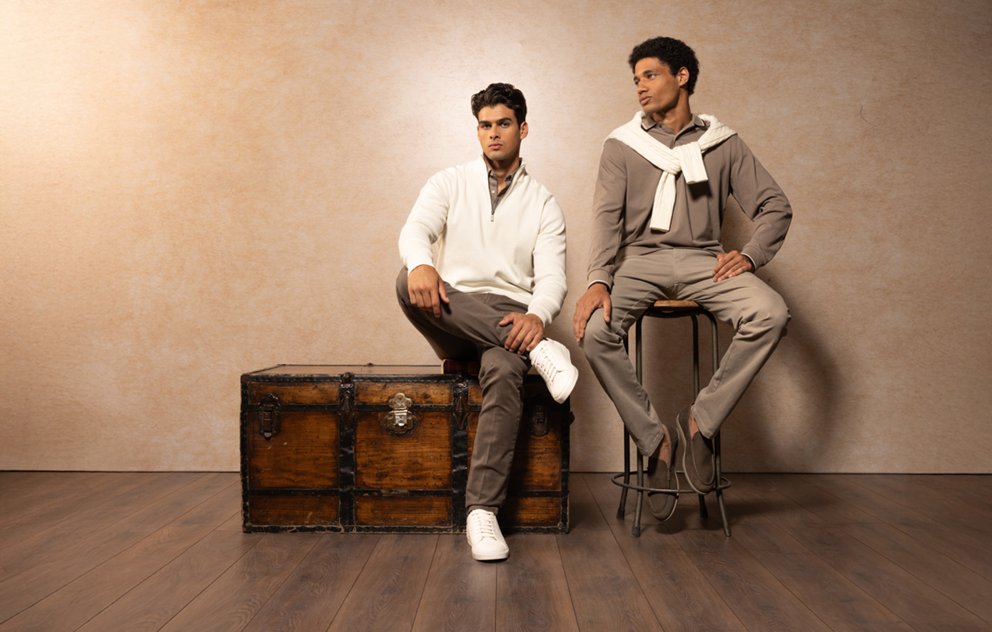 Στα παντελόνια, και πιο συγκεκριμένα στα κομψά city trousers, τα κλασικά chinos, τα μοντέρνα corduroy αλλά και τα denims σε διάφορα πλυσίματα, οι γραμμές είναι πλέον πιο relaxed, δίνοντας προτεραιότητα στην άνεση. Καλύπτουν έτσι κάθε στιγμή της ημέρας: από τα πρωινά στο γραφείο έως τις βραδινές εξόδους. Στο ίδιο πνεύμα, η συλλογή εμπλουτίζεται με μια νέα athleisure πρόταση: μια τεχνικά εξελιγμένη φόρμα που ενσωματώνει τη λειτουργικότητα στο καθημερινό στυλ.