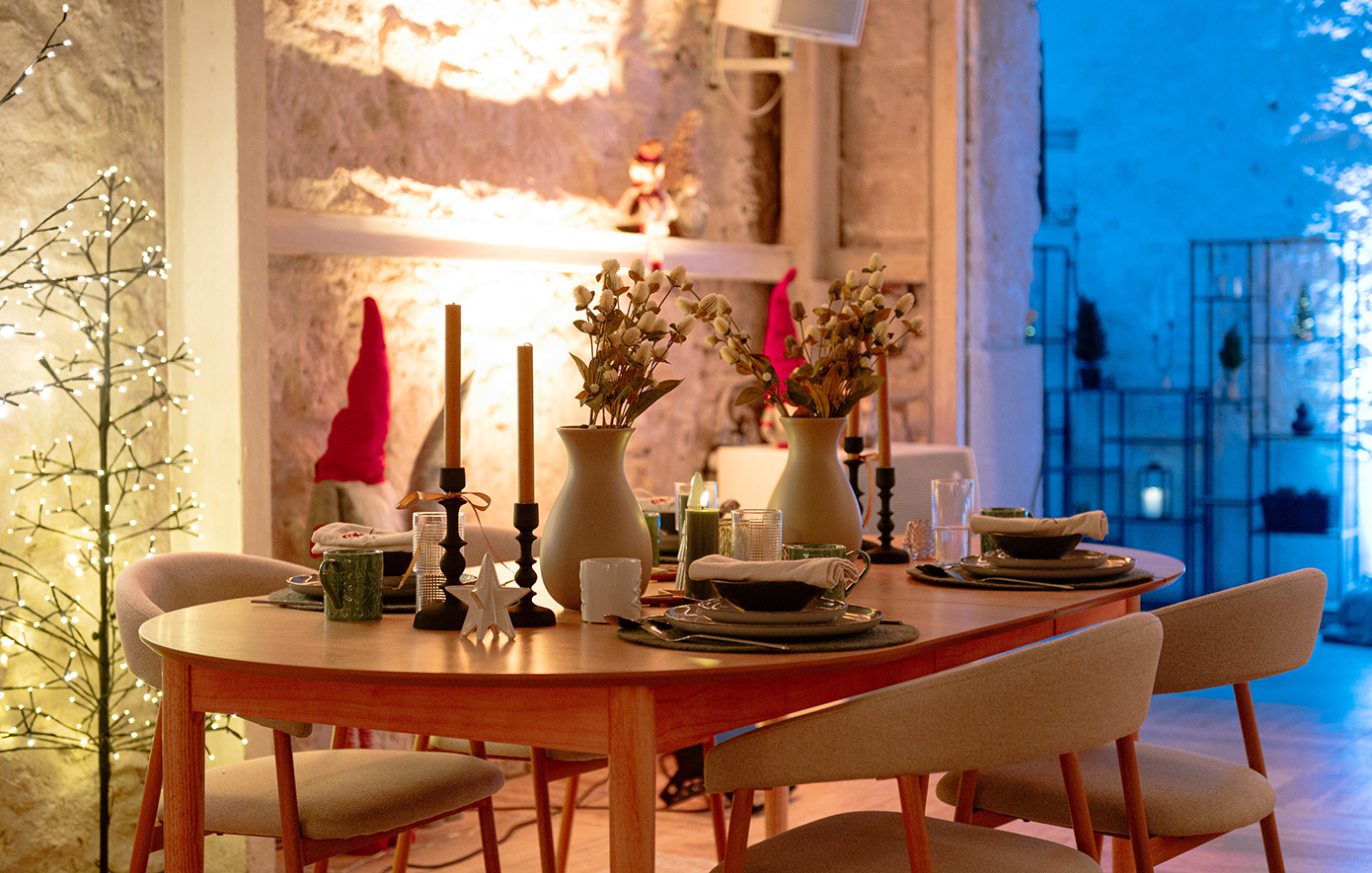 Φυσικά και φέτος δεν λείπουν κάποια διαχρονικά στοιχεία των παραδοσιακών Σκανδιναβικών Χριστουγέννων, όπως καρδούλες, έλατα και αστεράκια αλλά και τα ξωτικά των Χριστουγέννων, φανταστικά πλάσματα με μακρά ιστορία στη Σκανδιναβική λαογραφία που αποτελούν αναπόσπαστο κομμάτι των Σκανδιναβικών Χριστουγέννων. Άλλωστε ηJYSKείναι περήφανη για τη σκανδιναβική καταγωγή της που αποτελεί οδηγό για τον τρόπο λειτουργίας της από την ίδρυσή της το 1979 έως σήμερα. Για μια ακόμα χρονιά ο ιδιαίτερος φωτισμός του χώρου της εκδήλωσης συνέβαλλε τα μέγιστα στη δημιουργία μιας εορταστικής ατμόσφαιρας. Οι εξειδικευμένες λύσεις φωτισμού, προερχόμενες από φωτεινές γιρλάντες, λαμπάκια, διακοσμητικά με φωτάκια LED, φαναράκια και κεριά από τη γκάμα της JYSKέδεσαν ιδανικά με τον προσεγμένο φωτισμό του χώρου ώστε να δημιουργηθούν δύο διακριτοί,μαγικοί κόσμοι, ο θερμός κόσμος της κύριας σάλας και ο ψυχρός χώρος του αιθρίου.