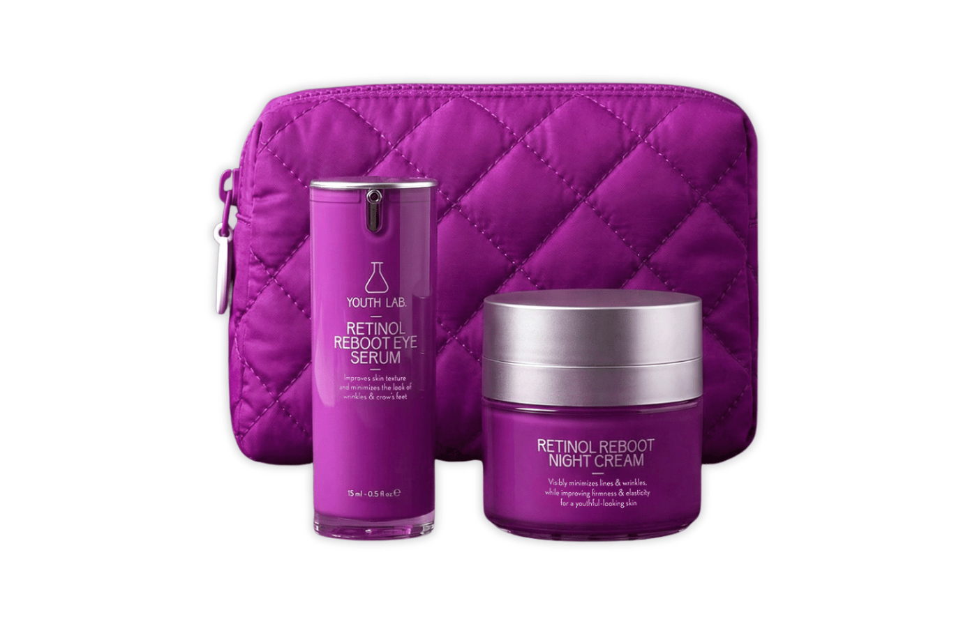 Το σετ της σειράς Retinol Reboot συνδυάζει δύο εξειδικευμένα προϊόντα νυχτερινής φροντίδας της YOUTH LAB., σχεδιασμένα να λειτουργούν συμπληρωματικά, προσφέροντας εντατική ανανέωση σε πρόσωπο και μάτια. Περιέχει: