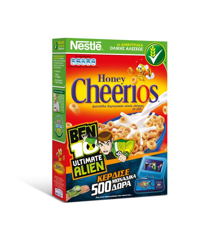 Βρείτε τώρα τον κωδικό που κρύβεται σε κάθε συσκευασία δημητριακών Nesquik, Nesquik Duo, Honey Cheerios, Cookie Crisp και Chocapic, στείλτε τον με SMS στο 54045 ή πληκτρολογήστε τον στο www.cerealsben10.gr και μπείτε στη μεγάλη κλήρωση για να κερδίσετε 300 μοναδικά φορητά DVD Players και 200 πακέτα παιχνιδιών Βen10 Ultimate Alien.