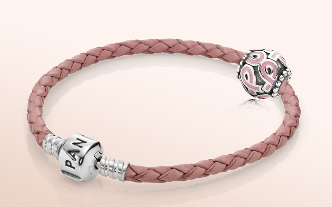 Για τον ίδιο σκοπό, τη φετινή χρονιά, το ροζ δερμάτινο βραχιόλι της Pandora με το ασημένιο σύμβολο της εκστρατείας
