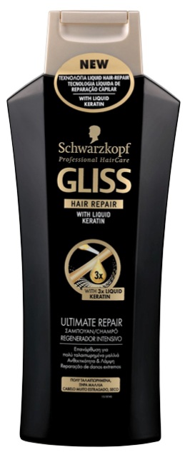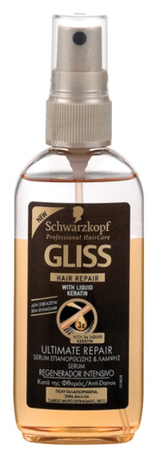 Το Gliss χαρίζει υγεία και αντοχή στα μαλλιά χάρη στην απόλυτη μέθοδο επανόρθωσης Liquid Hair – Repair με υγρή κερατίνη, η οποία αναδομεί την επιφάνεια και το εσωτερικό της τρίχας με παρεμφερείς ουσίες από τις οποίες αποτελείται.