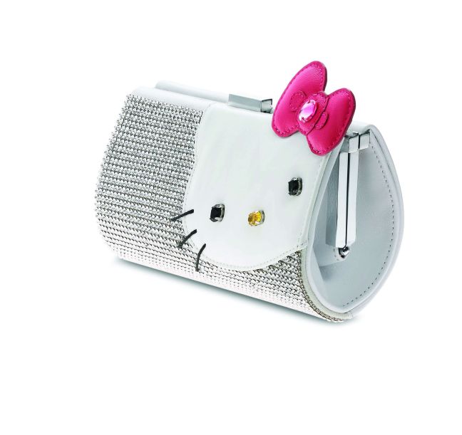 Για βραδινές εμφανίσεις, η κλασική τσάντα «Power» της Swarovski από διαφανές Crystal Mesh έχει προσαρμοστεί για να ταιριάζει με την υπόλοιπη συλλογή. Το πρόσωπο της Hello Kitty έχει αποτυπωθεί σε λευκό δέρμα λουστρίνι και περιλαμβάνει ροζ δερμάτινο φιόγκο, ενώ και τα δύο είναι διακοσμημένα με μαύρα, κίτρινα και ροζ κρύσταλλα. Επίσης, η τσάντα περιλαμβάνει ανάγλυφο λογότυπο Hello Kitty από κομψό λευκό δέρμα.