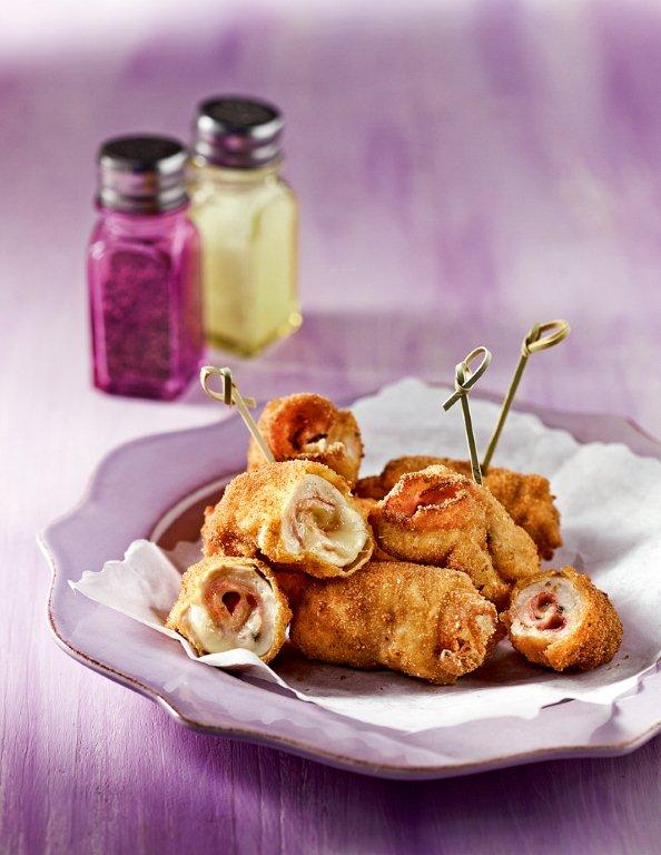 Τα στραγγίζουμε σε απορροφητικό χαρτί κουζίνας, αφαιρούμε τις οδοντογλυφίδες και τα σερβίρουμε ζεστά. Ελέγχουμε αν το κοτόπουλο Νιτσιάκος έχει μαγειρευτεί, κόβοντας ένα ρολό. Το ψαχνό πρέπει να είναι λευκό, χωρίς ροζέ σημεία, αλλιώς τηγανίζουμε για λίγο ακόμα, σε χαμηλότερη φωτιά.