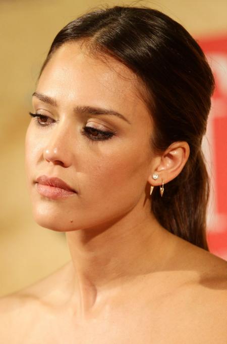 Με ένα αισθησιακό κραγιόν τονίζει τα σαρκώδη χείλη της, η Jessica Alba.