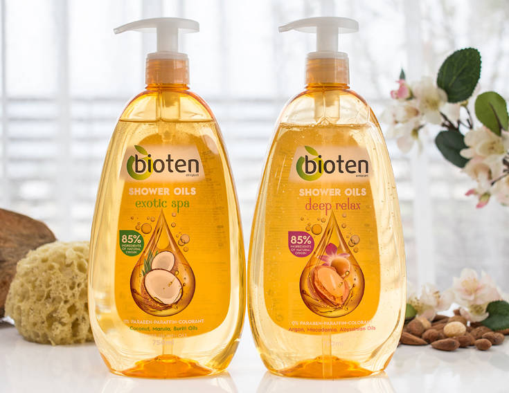 Το bioten φροντίζει για σένα μέσα από τη σειρά αφρόλουτρων bioten Shower Oils. Το Exotic Spa Shower Oil μαζί με το Deep Relax Shower Oil είναι δύο μοναδικά αφρόλουτρα που σου χαρίζουν αξέχαστες στιγμές χαλάρωσης, περιποίησης και φροντίδας, κάνοντας την ώρα του μπάνιου σου, το time for yourself που χρειάζεσαι. Η σύνθεση τους βασίζεται σε υπέροχα έλαια, που αποτελούν super-foods για την επιδερμίδα και φημίζονται για την ενυδατική, αντιοξειδωτική και αντιγηραντική τους δράση.