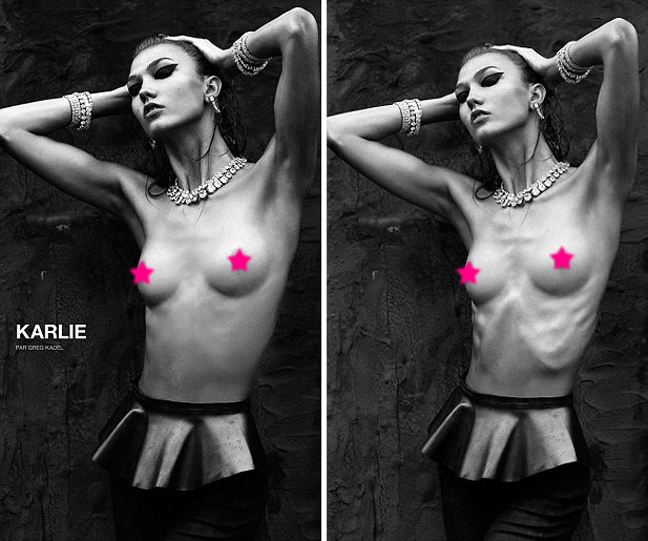 Πολλοί επέκριναν την κίνηση αυτή, σημειώνοντας ότι εικόνες που δείχνουν σε ένα τόσο λεπτό μοντέλο τα οστά του να είναι κανονικά, αποτελούν οπισθοδρόμηση και πως η επεξεργασία είναι υπερβολική.