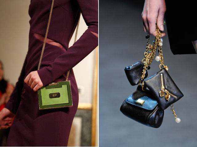 Ιδανικές για ένα ρομαντικό ραντεβού, για τη βραδινή μας έξοδο ή για τις μέρες εκείνες που δεν χρειάζεται να κουβαλάμε μαζί μας όλα μας τα υπάρχοντα. Μερικές από τις φετινές τσάντες είναι απλά μικρές, είδαμε όμως και πραγματικά μικροσκοπικές τσάντες όπως αυτές που παρουσιάζονται στη συλλογή Dolce & Gabbana.