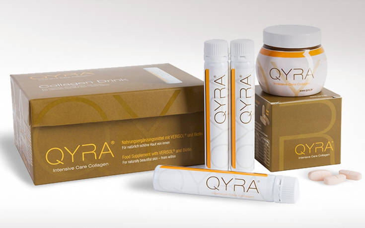 Το QYRA είναι ένα εντελώς νέο προϊόν που περιέχει εξελιγμένα πεπτίδια κολλαγόνου verisol σε μορφή ταμπλέτας ή σε πόσιμα φιαλίδια, για εντατική φροντίδα του δέρματος. Αναπληρώνει το χαμένο κολλαγόνο στα βαθύτερα στρώματα του δέρματος πάρα πολύ γρήγορα.