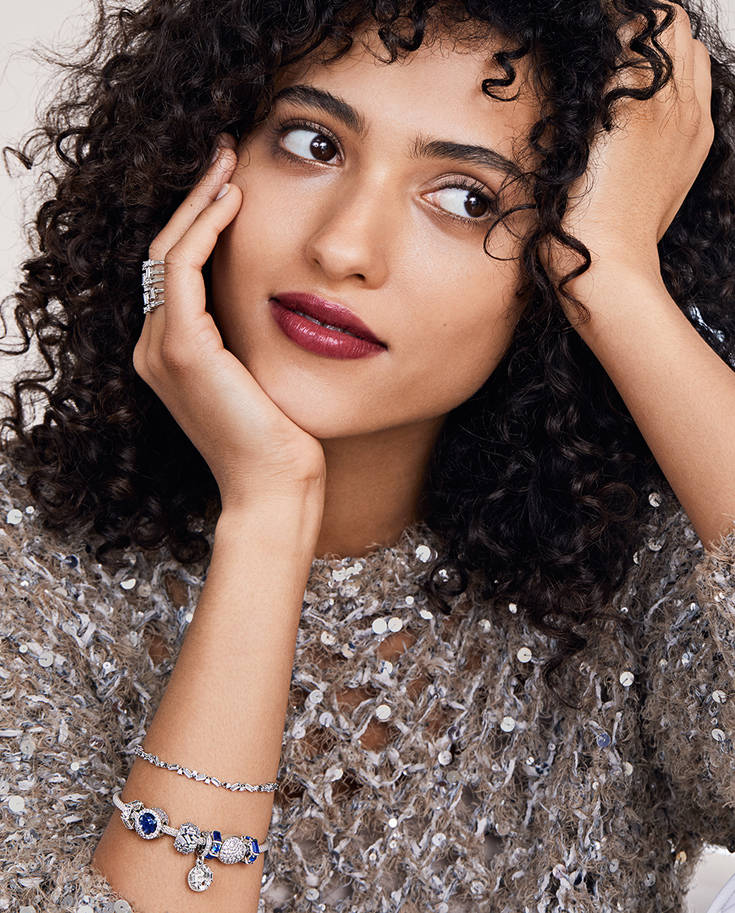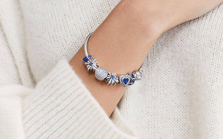 Δημιουργήστε mix & match εμφανίσεις με μασίφ ασήμι, PANDORA Rose, διάφανες πέτρες και εκθαμβωτικά μπλε κρύσταλλα, προσθέτοντας τις απαραίτητες γιορτινές πινελιές σε κάθε party look!