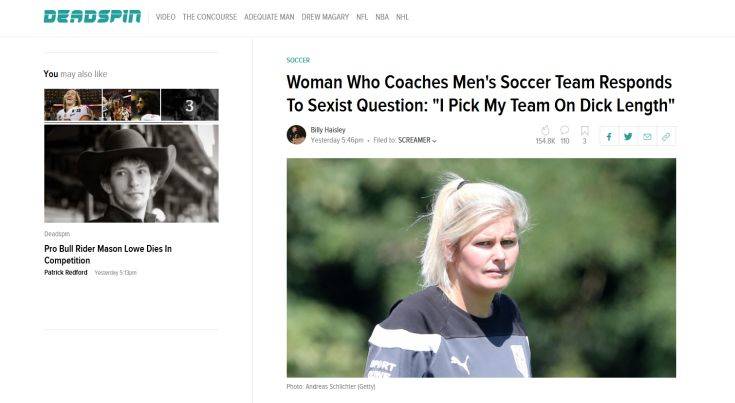 Όπως αναφέρει το ΒΒC η ίδια αποκάλυψε ότι ένας δημοσιογράφος την ρώτησε πώς προσαρμόζεται ανάμεσα σε τόσους πολλούς άνδρες στα αποδυτηρια. Ενώ συνέχισε λέγοντάς της αν φορά κάποιο κουδούνι για να τους προειδοποιεί ώστε εκείνοι να είναι ντυμένοι όταν μπαίνει.