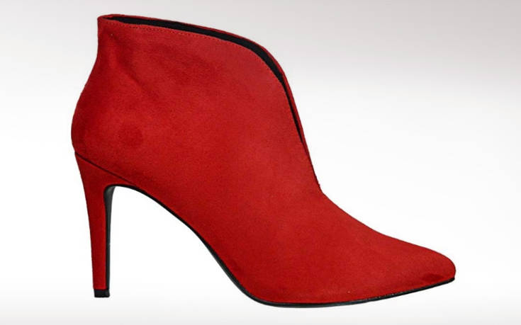 Για μία μοντέρνα εκδοχή του κόκκινου παπουτσιού, επιλέξτε μποτάκι με ιδιαίτερο, βαθύ κόψιμο στον αστράγαλο, λεπτό τακούνι και μυτερό μπροστινό μέρος.