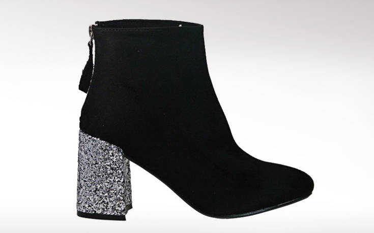 Το στιλέτο μπορεί να έχει τη γοητεία του, αλλά το πιο χοντρό, γεωμετρικό τακούνι αποτελεί τάση, εδώ και μερικές σεζόν. Για έξτρα χαρακτήρα, επιλέξτε ένα ζευγάρι μποτάκια που θα συνδυάζουν μαύρο suede και χοντρό τακούνι, διακοσμημένο με glitter και…ασημόσκονη!