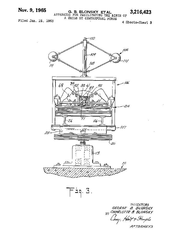 Μια «Συσκευή για τη διευκόλυνση της γέννας ενός παιδιού με τη φυγόκεντρη δύναμη», όπως ήταν ο επίσημος τίτλος.