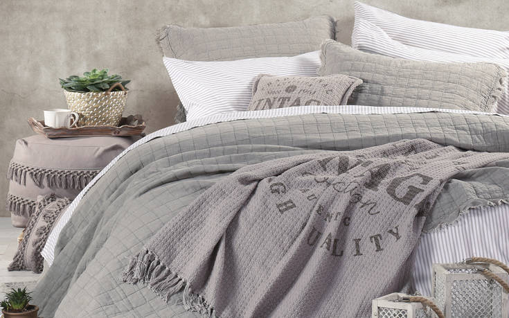 Σειρά Vintage: από 100% βαμβάκι 144 κλωστών, garment wash. Σετ σεντόνια υπέρδιπλα 69 ευρώ. Σετ παπλωματοθήκη υπέρδιπλη 69 ευρώ