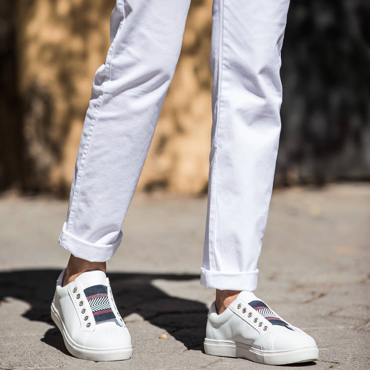 Για τις casual εμφανίσεις και άνετες βόλτες επίλεξε ένα ζευγάρι λευκά sneakers με ιδιαίτερο σχέδιο που θα συνδυάσεις με μια μαρινιέρα, τζιν ή cropped παντελόνια, ακόμα και φούστες για ένα stylish αποτέλεσμα.