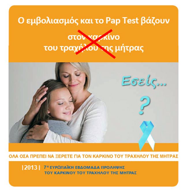 Ο Όμιλος Εθελοντών Κατά του Καρκίνου – ΑγκαλιάΖΩ στο πλαίσιο της 7ης Ευρωπαϊκής Εβδομάδας Πρόληψης για τον καρκίνο του τραχήλου της μήτρας οργανώνει καμπάνια με κεντρικό μήνυμα προς όλες τις Ελληνίδες «Ο Εμβολιασμός και το Pap- Test βάζουν Χ Στον Καρκίνο του Τραχήλου της Μήτρας. Εσείς;»