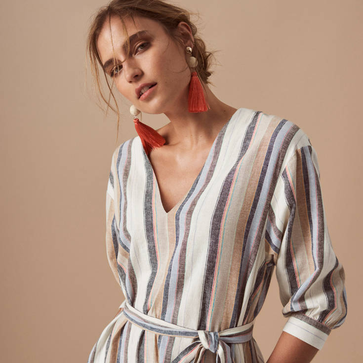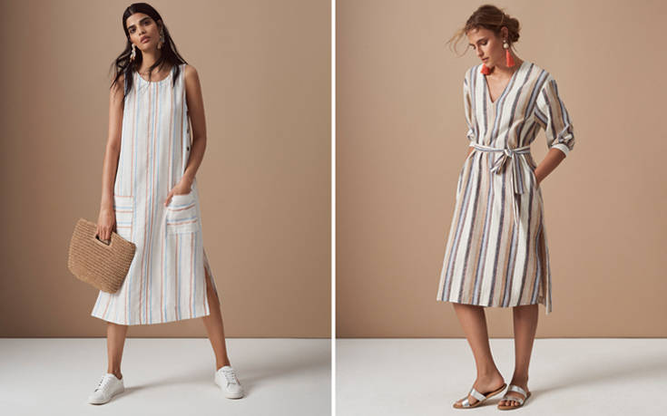 Τα φορέματα αποτελούν key item για την εποχή και τα M&S μας παρουσιάζουν βαμβακερά κομμάτια, εφαρμοστά midi και maxi με χαρακτηριστικά pinstripes, ενώ δεν παραλείπουν τις προτάσεις σε beachwear με εντυπωσιακά μοτίβα για την παραλία.