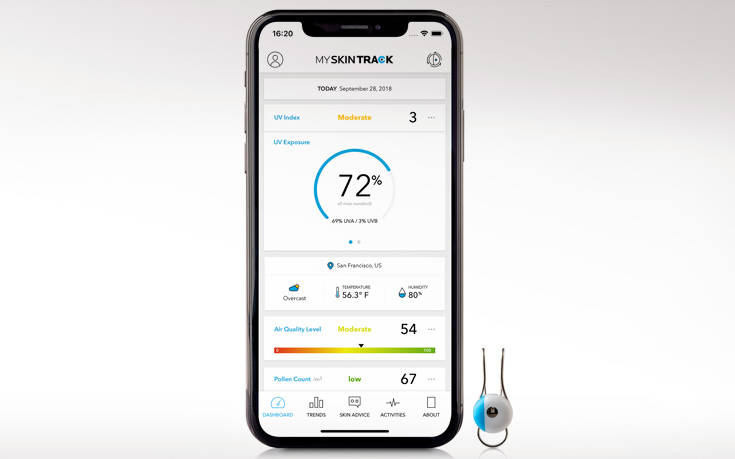 Το βραβευμένο La Roche-Posay My Skin Track UV μετρά τόσο τις ακτίνες UVA όσο και τις UVB, ενώ ενημερώνεται αυτόματα και μπορεί να αποθηκεύσει δεδομένα έως και τριών μηνών. Αυτός ο αισθητήρας λειτουργεί χωρίς μπαταρίες, καθώς ενεργοποιείται από τον ήλιο και τροφοδοτείται από το κινητό τηλέφωνο του χρήστη χρησιμοποιώντας τεχνολογία Επικοινωνίας Κοντινού Πεδίου. Το My Skin Track UV μεταφέρει τα αποθηκευμένα δεδομένα στη συνοδευτική εφαρμογή μέσω μιας απλής λειτουργίας αφής: ο χρήστης απλώς πατά το My Skin Track UV κρατώντας το κοντά στη συσκευή του, ώστε να ενημερωθεί η εφαρμογή.