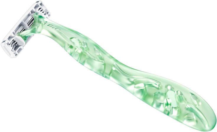 Με ενυδατική ταινία, εμπλουτισμένη με βιταμίνη Ε και aloe vera και κομψή λαβή διακοσμημένη με σχέδια λουλουδιών που παρέχει το τέλειο κράτημα. Άνετο ξύρισμα με στυλ!