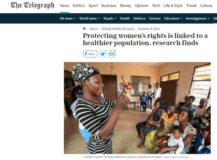 Οι πληθυσμοί των χωρών που υποστηρίζουν δυναμικά τα οικονομικά και κοινωνικά δικαιώματα των γυναικών είναι πιο πιθανό να είναι υγιείς από αυτούς που δεν το κάνουν, σύμφωνα με νέα έρευνα την οποία επικαλείται η Telegraph.